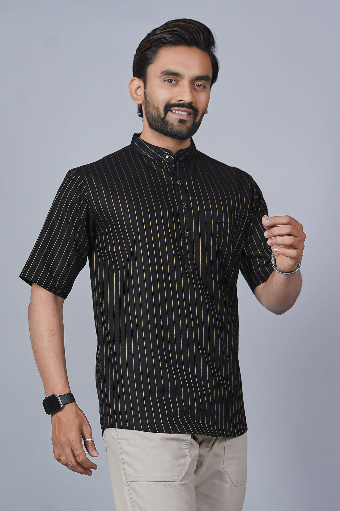 KEENLINE Luxe Kurta-Style Linen Cotton Shirt – Premium Festive Smart Wear