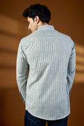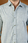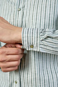 KEENLINE Men’s Premium Cotton Green Striped Full Sleeve Shirt – Smart Casual Wear