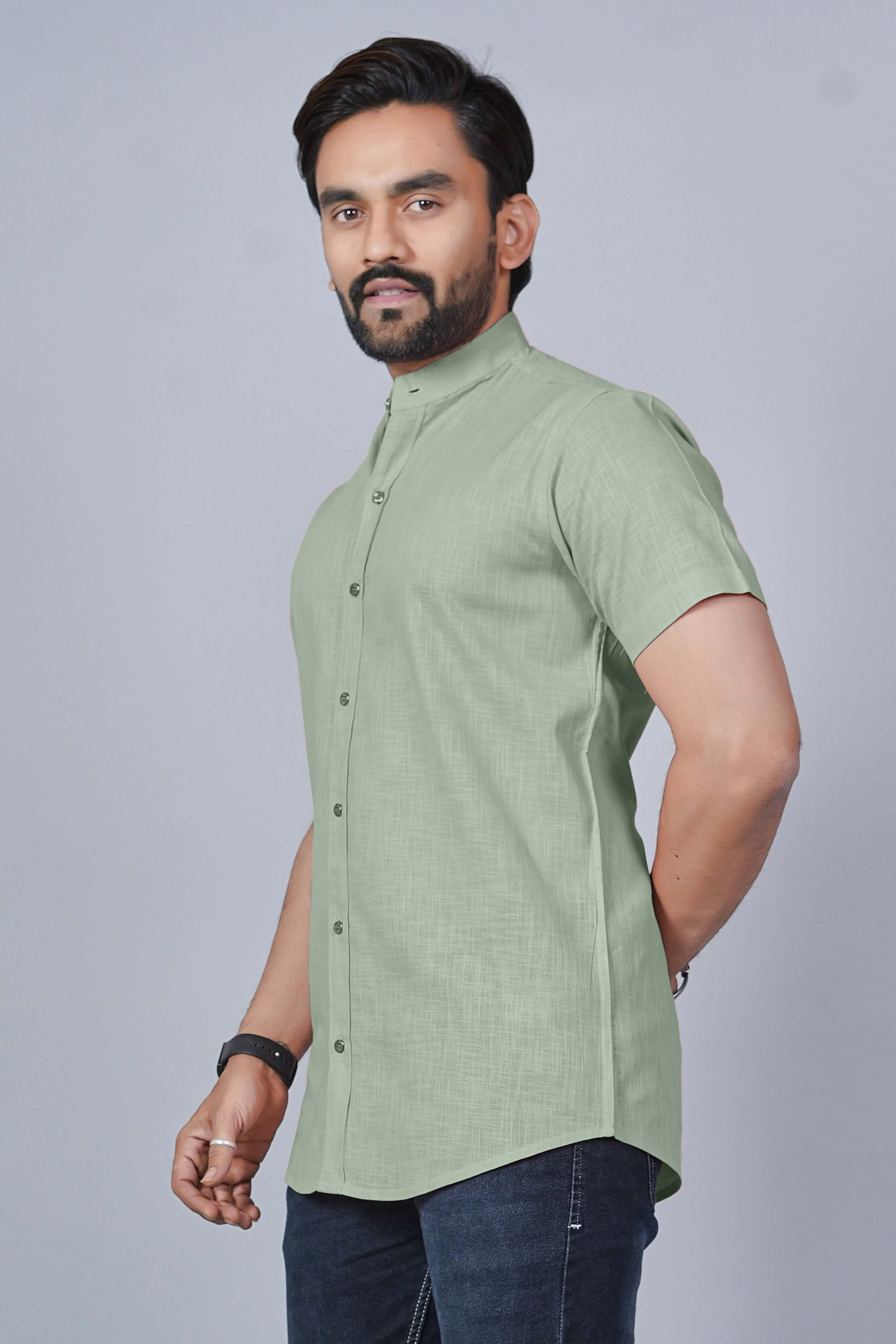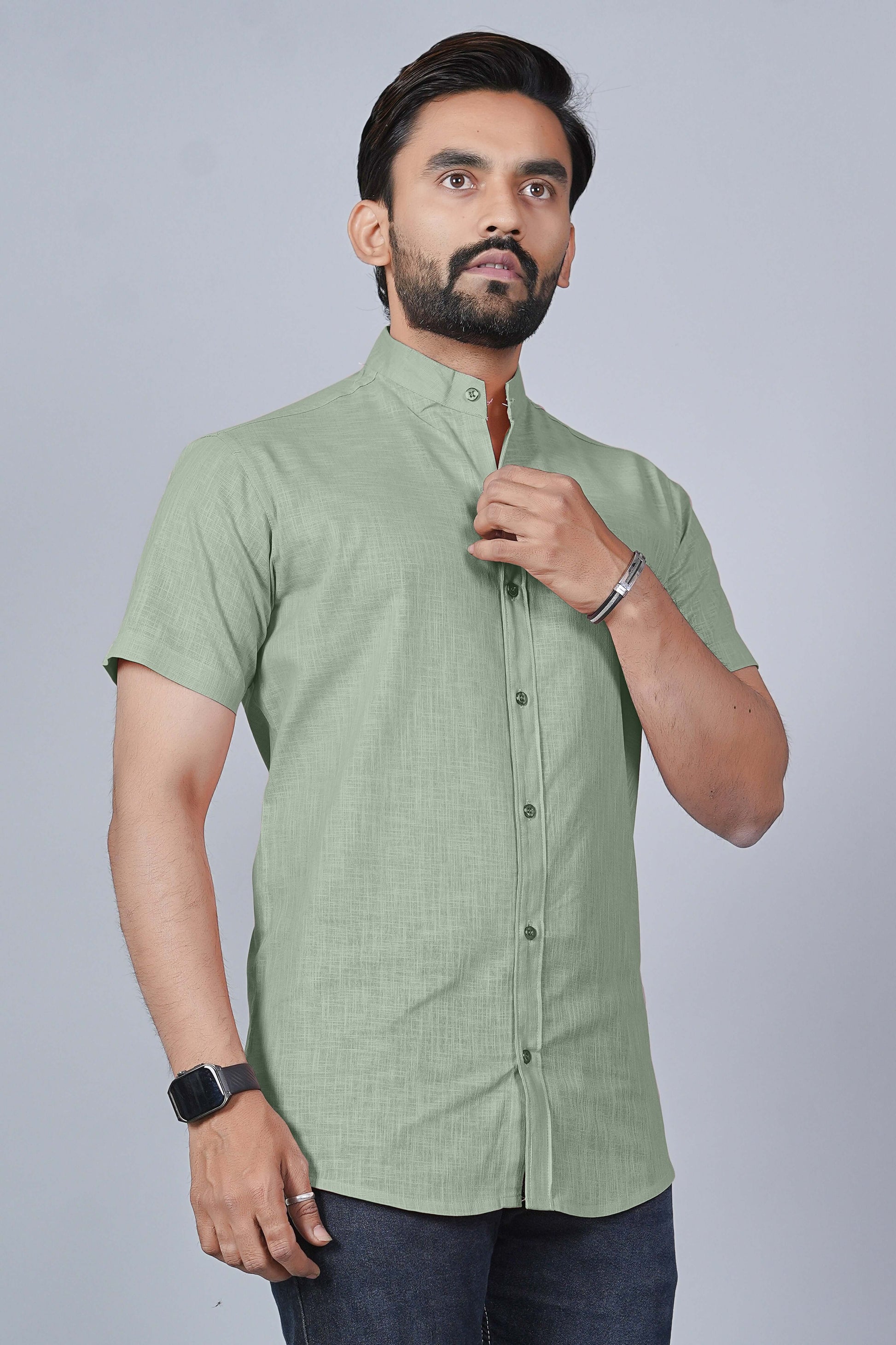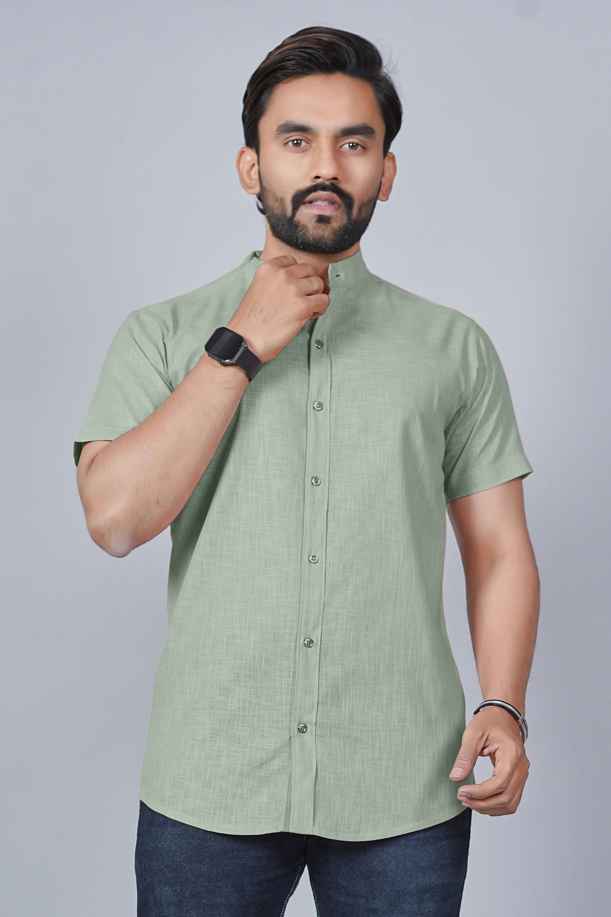 Men’s Pastel Green Linen Cotton Shirt – Cool Casual Wear